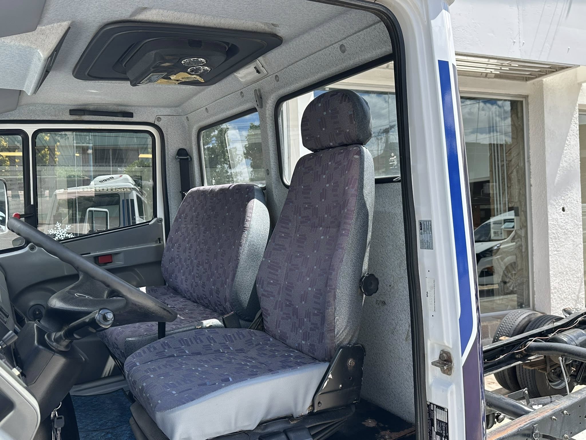 La cabina ofrece ergonomía sencilla pero cómoda, con comandos accesibles y excelente visibilidad, lo que lo hace ágil y seguro en maniobras urbanas.
