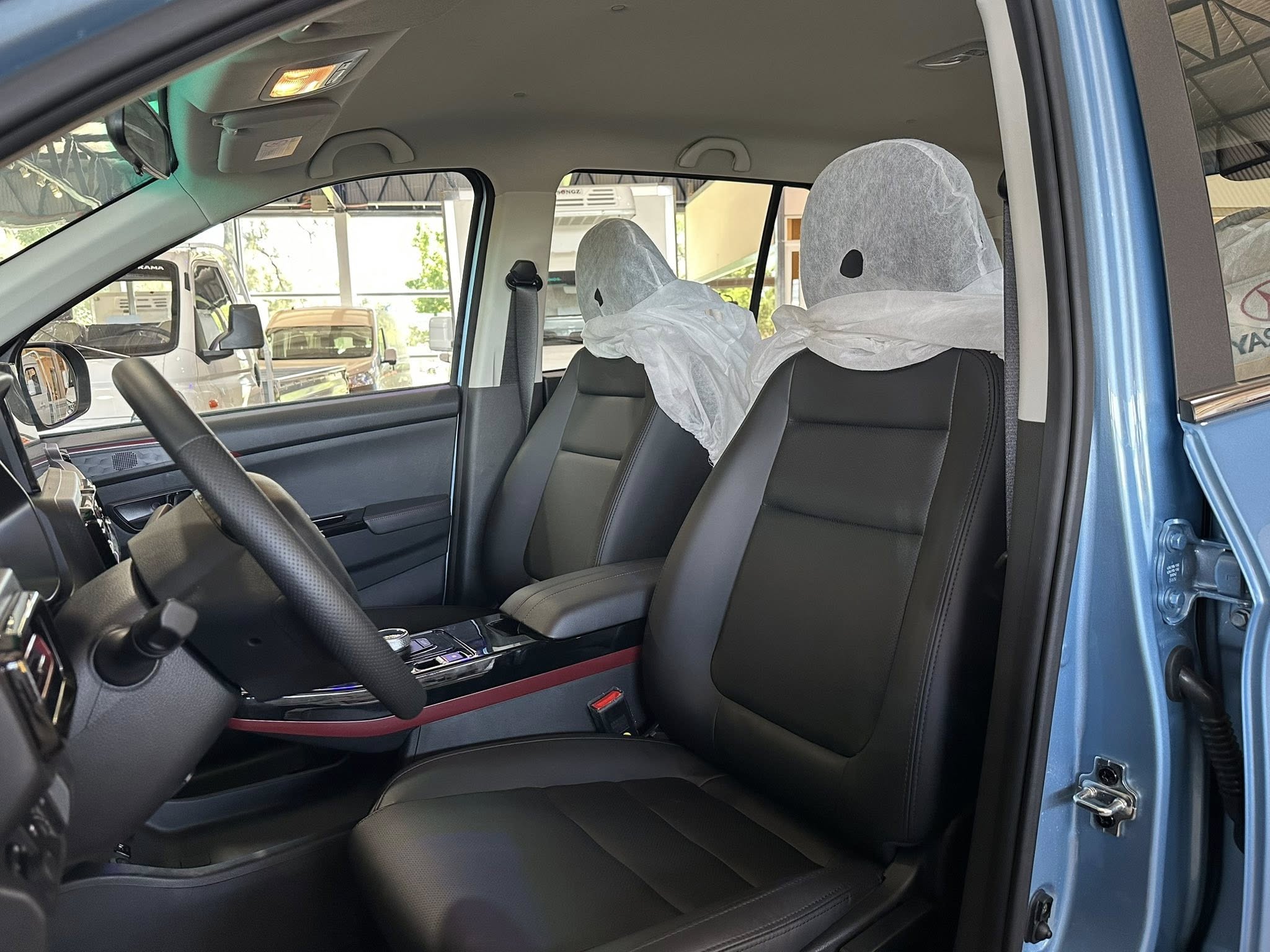 - Caja del reposabrazos central delantero • Reposabrazos de las puertas forrados en cuero • Reposabrazos central en la segunda fila (configuración 2+2+3) • Estuche para gafas • Toma de corriente de 12 V • Parasol del conductor con soporte para tickets • Parasol del acompañante Confort: • Sistema de arranque con botón + entrada sin llave para el conductor • Selección del modo de conducción: Economy / Standard / Sport • Bolsillo en el respaldo del asiento delantero • Espejos exteriores ajustables eléctricamente • Espejos exteriores con calefacción eléctrica • 2 llaves inteligentes • Faros delanteros ajustables en altura • Volante multifunción forrado en cuero • Ajuste manual del volante (arriba / abajo) • Ventanilla del conductor con bajada de un solo botón • Ventanillas eléctricas en las cuatro puertas • Alarma por faros encendidos • Aire acondicionado eléctrico • Salida de aire trasera